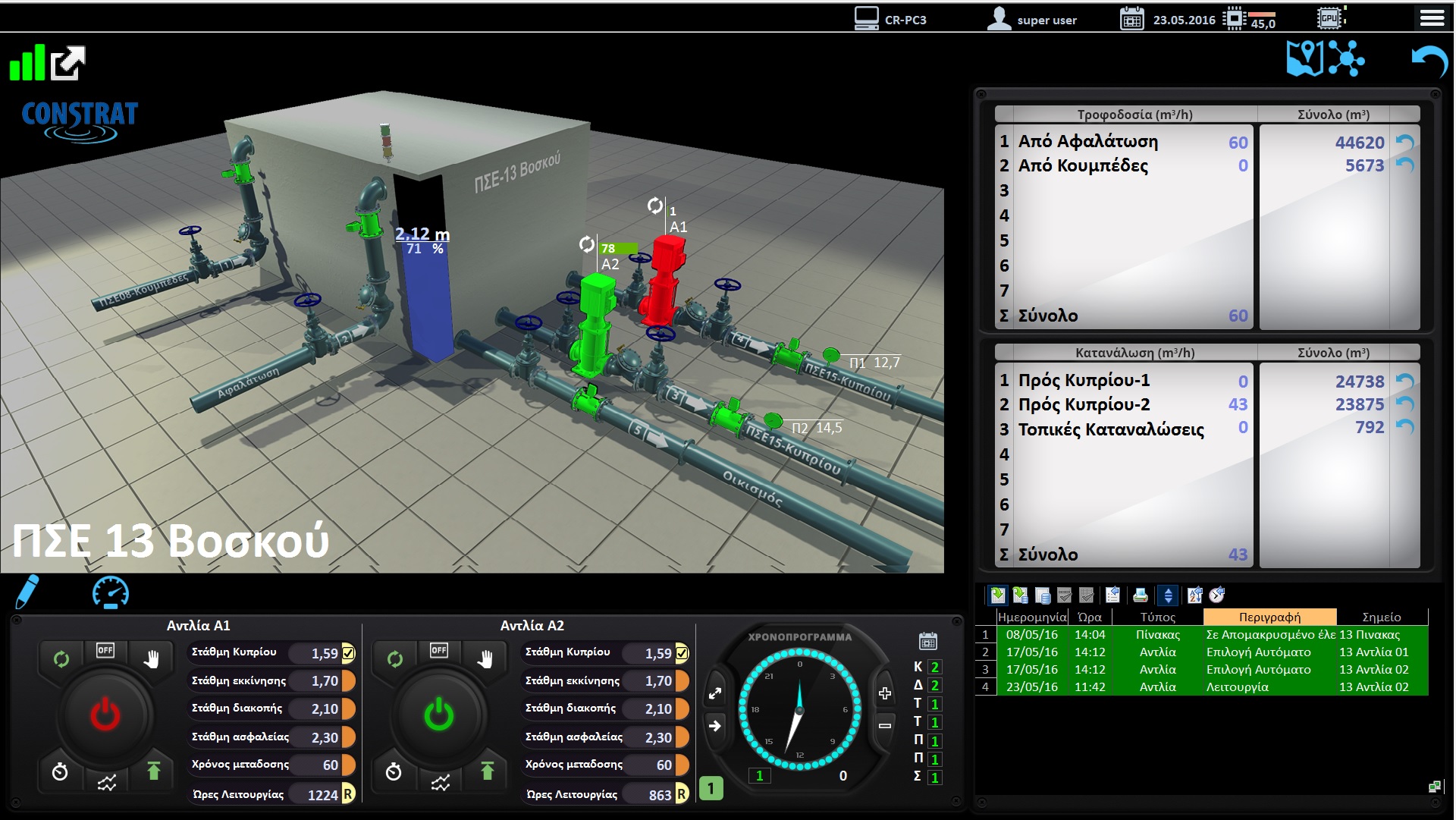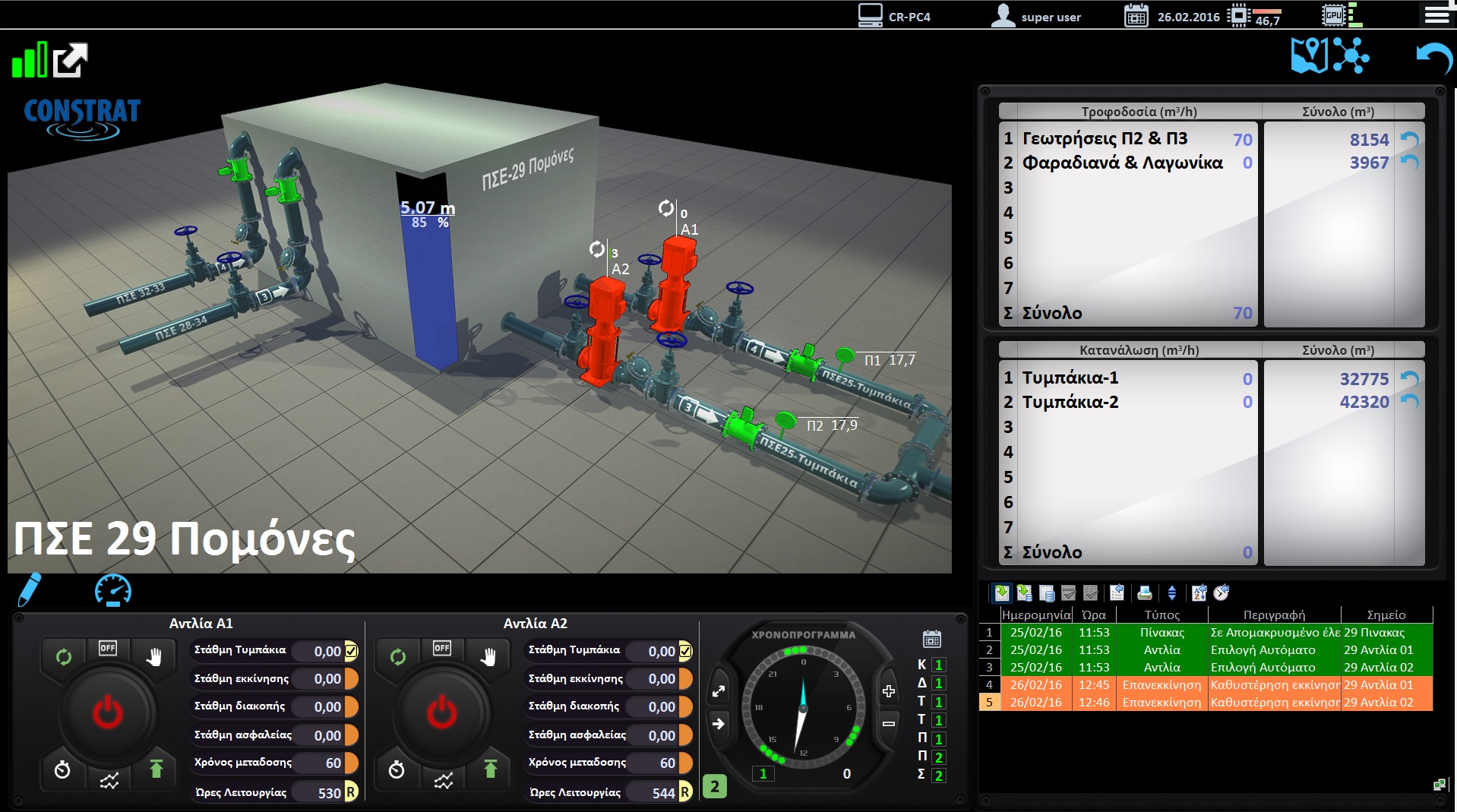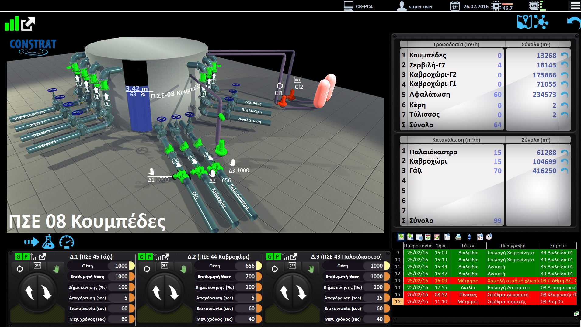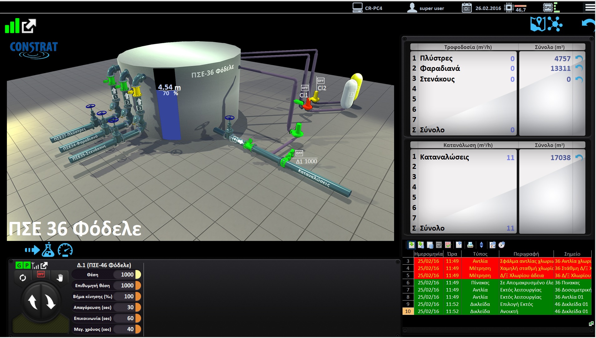 All the operational and measurement data will be continuously monitored and any deviation will trigger alarms that will be propagated to the standby personnel via email and SMS. The target is to minimize the reaction times in case of any abnormality in the operation of the water supply network.