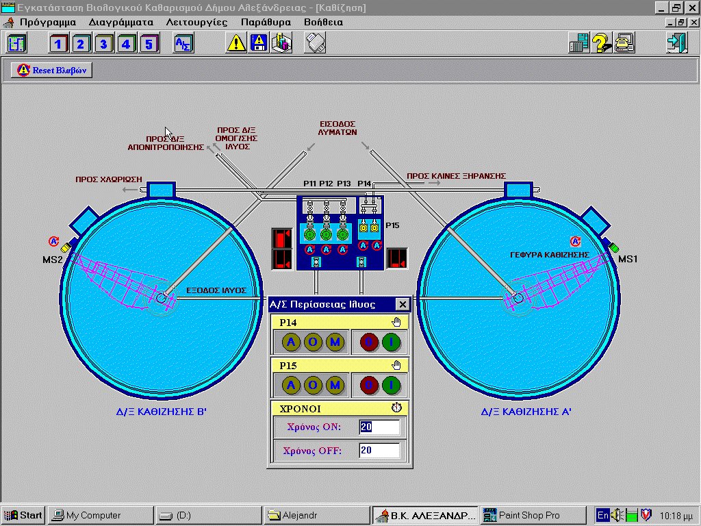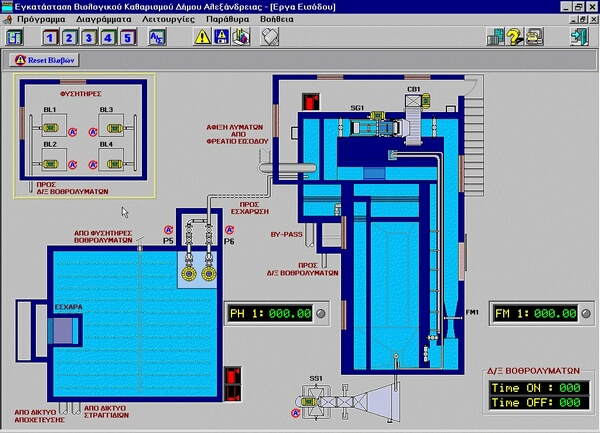 Municipality of Alexandreia. Imathia prefecture. Monitoring and control system. Operational diagrams of the installation Alarms Management. Actuator commands. Measurements logging. Hour counters for various items. Reporting. .