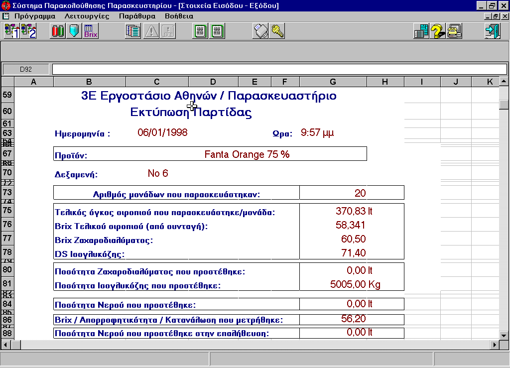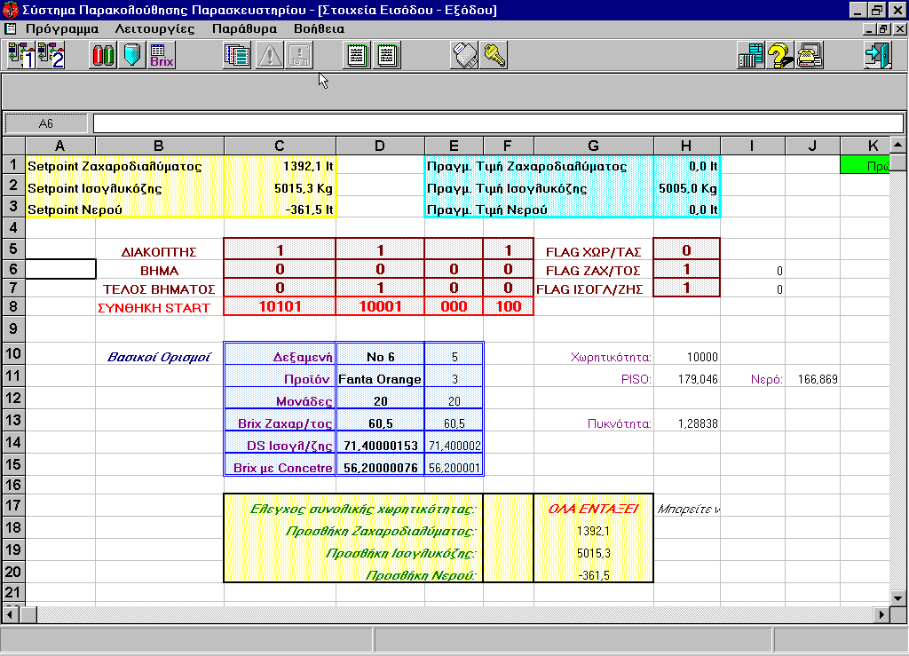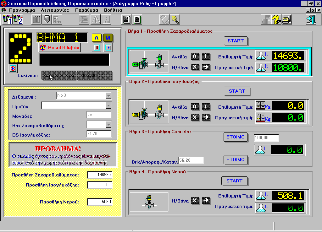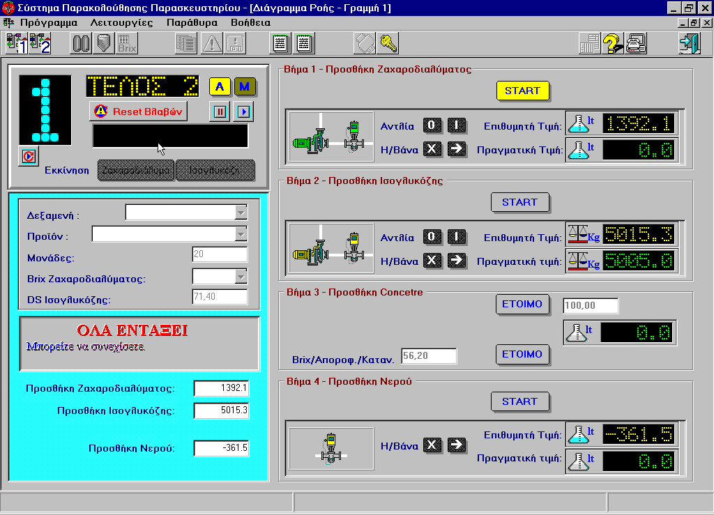 Coca Cola Tria Epsilon Production recipes handling. Correct execution of production recipes' monitoring. Manual control of the equipment. Products management. Detailed data logging for the plant's daily production. Production reporting. .