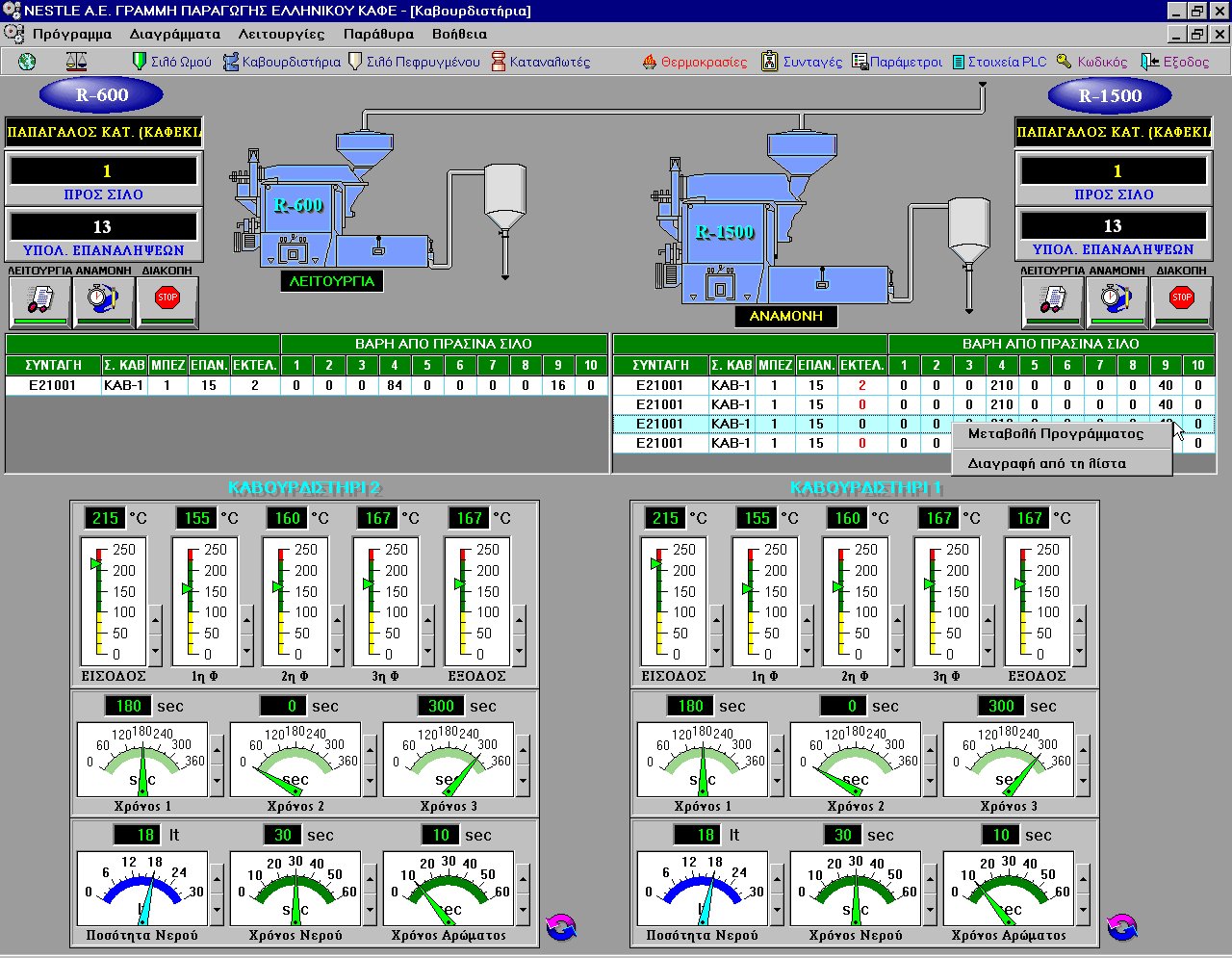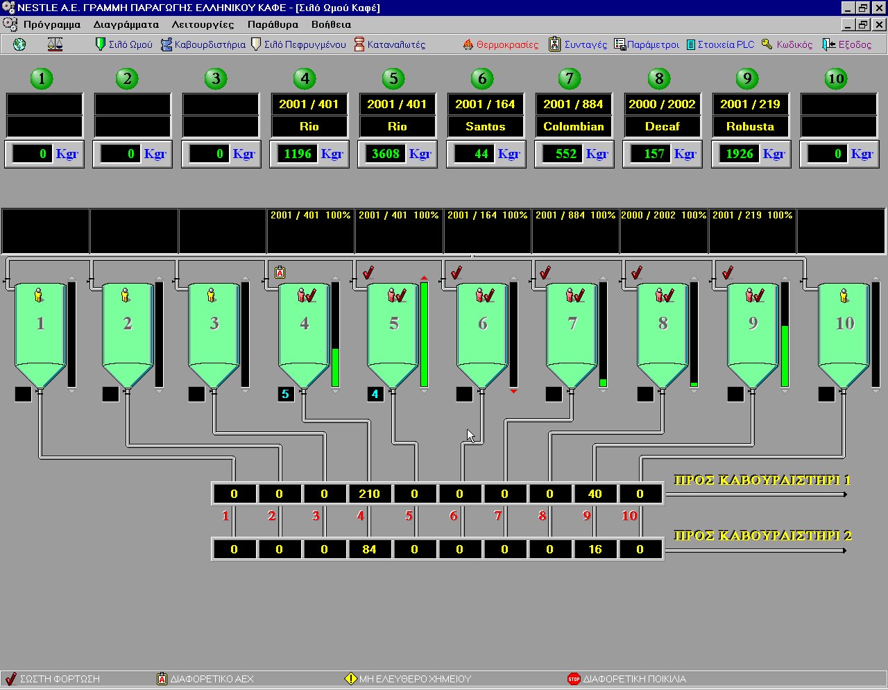 - Automated procedures for the feeding of the roasted coffee grinders.