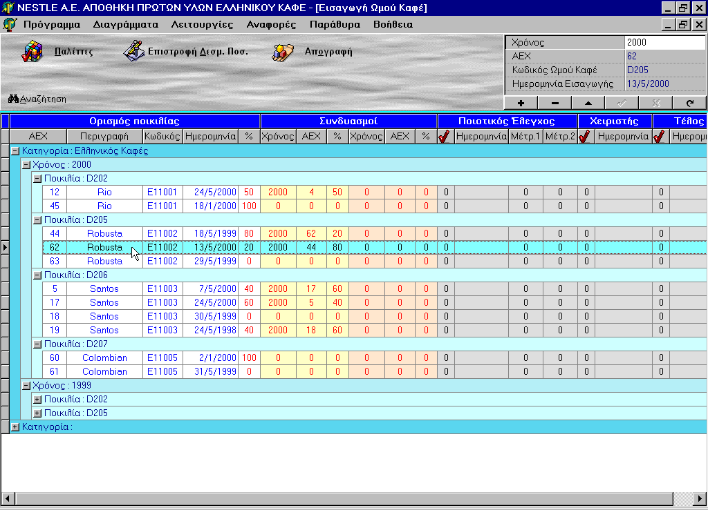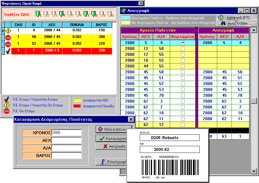 NESTLE HELLAS S.A. This project has been upgraded and replaced. Raw coffee imports scheduling Quality Assurance material release procedures handling Palett and individual sack labeling. Warehouse inventory. Raw materials' silos loading and production automation real-time update.