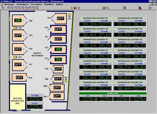 - Temperatures' monitoring in ovens, boilers and ripeners